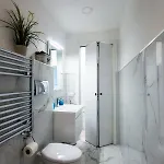 Geniet van het comfort van een badkamer in Milan Style Apartment - City Center, dat met een haardroger en handdoeken is uitgerust. Daarnaast vindt u er een bidet, een apart toilet en een douche.
